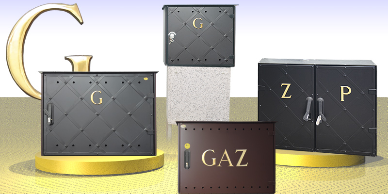 Obudowy mogą być montowane samodzielnie, na fundamencie betonowym, lub jako naścienne. Wykonane z metalu w kolorze czarnym mat. Litery wykonane z mosiądzu, pojedyncze G lub cały napis GAZ