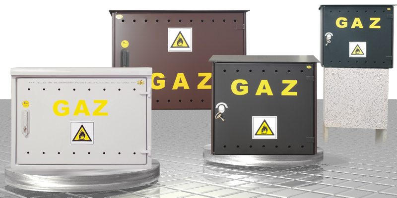 Obudowy mogą być montowane samodzielnie, na fundamencie betonowym, lub jako naścienne. Wykonane z materiału estroduru (popielate) lub metalowe w kolorach dowolnych. W standardzie kolor ciemny brąz lub czarny. Zamykanie na zamek trójkątny lub baskiwilowy.