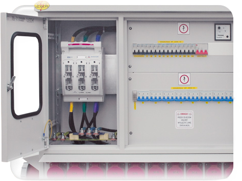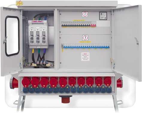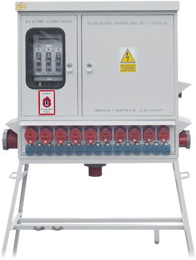 Rozdzielnia budowlana wersja metalowa na stojaku przenośnym. Wersja specjalna.