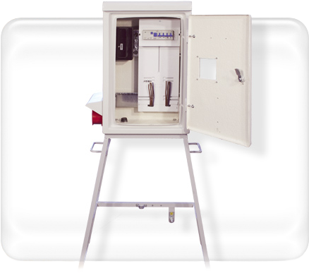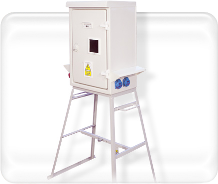 Rozdzielnia budowlana z pomiarem na stojaku przenośnym plastikowa.